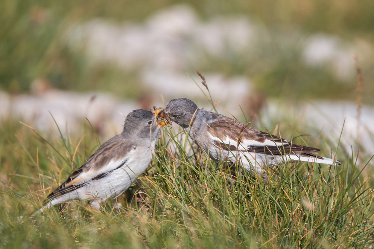 Era molto vicino, a terra e dal verso era evidente che fosse un giovane che chiamava l’adulto. Piano piano si è avvicinato e contemporaneamente è arrivato l’adulto che ha iniziato ad imbeccarlo. Erano entrambi incuranti della mia presenza e l’imbeccata si è ripetuta più volte, tanto che sono riuscito a spostarmi lentamente in condizioni di luce migliori per rubare questo scatto.