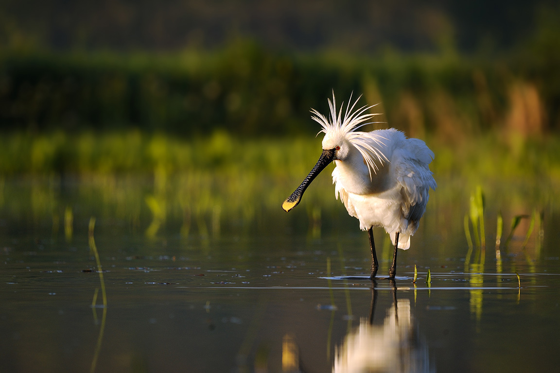 Questa foto è stata scattata in una zona paludosa vicino al fiume Musone nel territorio di Osimo, durante un appostamento fotografico. Questo magnifico animale metteva in scena la più antica delle rappresentazioni, sfoggiando il suo aggraziato e raffinato abito nuziale. Solo madre natura poteva donargli una tale eleganza e portamento. La luce dell’alba ha fatto il resto, creando una ambientazione suggestiva ed incantevole.