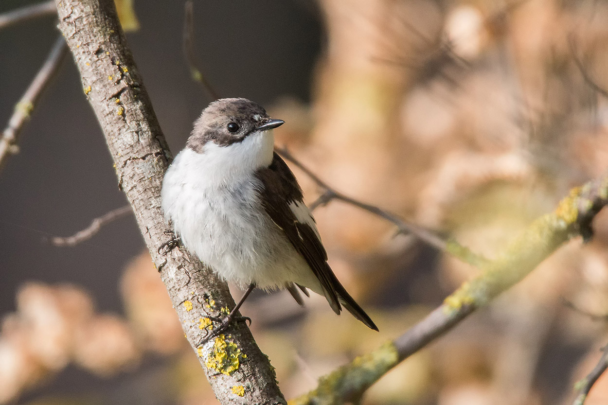 Scendo verso il fiume Potenza, lì dovrei trovare diverse specie che non posso vedere in città. Scendo dalla macchina e mentre mi incammino lungo la strada che costeggia il fiume, una garzetta e un cormorano in volo lungo il fiume mi permettono di mettere la prima spunta alla lista. Mentre guardo il volo dei rondoni e ascolto il richiamo monotono del codirosso, con l’occhio vedo un movimento in un arbusto sul bordo della strada. Oggi non si può perdere niente, ogni soggetto alato va identificato con attenzione per inserirlo nella lista. Il soggetto si muove rapidamente tra le foglie, è strano, a momenti vedo nero, poi bianco, nella mente parte la ricerca schematica della specie…si potrebbe essere una balia…ma devo vederla meglio. Faccio qualche passo indietro e attendo. Pazienza, attesa…poi finalmente va a cercare un raggio di sole e si mostra nella sua bellezza. Sì è lei la balia nera, un maschio, un passeriforme della famiglia dei Muscicapidae (come il pigliamosche), un migratore. Purtroppo non nidifica qui da noi, raramente in Italia, quindi niente spunta nella check list, ma il suo incontro mi rende comunque molto felice.