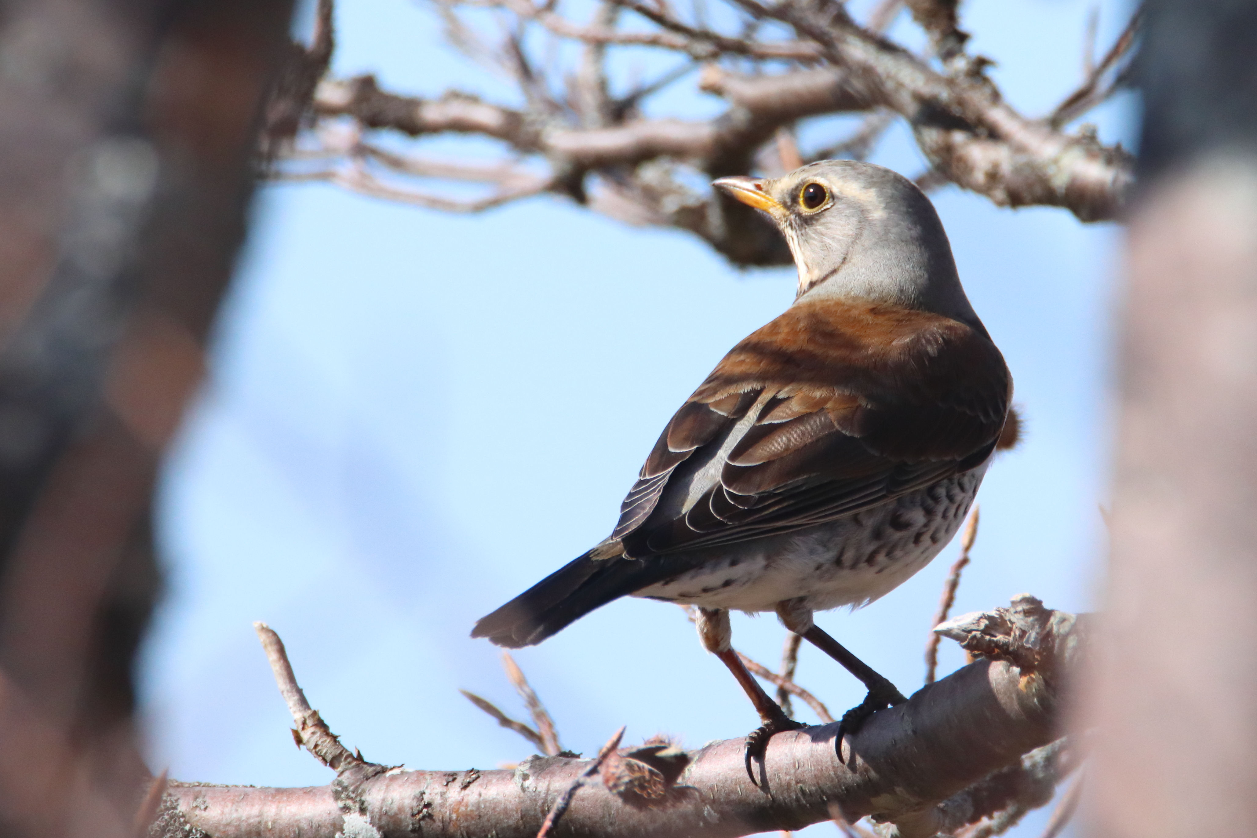 Il 29 marzo viste le restrizioni agli spostamenti, ho fatto una escursione fino alla croce del Monte Cardosa, sopra Visso. Nessuna velleità fotografica corredata da mimetizzazione, attrezzatura completa, appostamento, ecc. Solo una passeggiata in montagna. Memore del “..non si sa mai!!”, ho comunque portato al seguito la fotocamera con montato il teleobiettivo, agganciata allo spallaccio dello zaino per un rapido impiego. Durante la discesa di rientro ho visto involarsi da un cespuglio ai rami di un albero una cesena che, stranamente, è rimasta ferma per qualche secondo nonostante fossi abbastanza vicino. Il tempo di immortalarla con alcuni scatti, e se n’é andata, mostrandomi l’unica parte che di consueto ti lascia vedere…la coda.