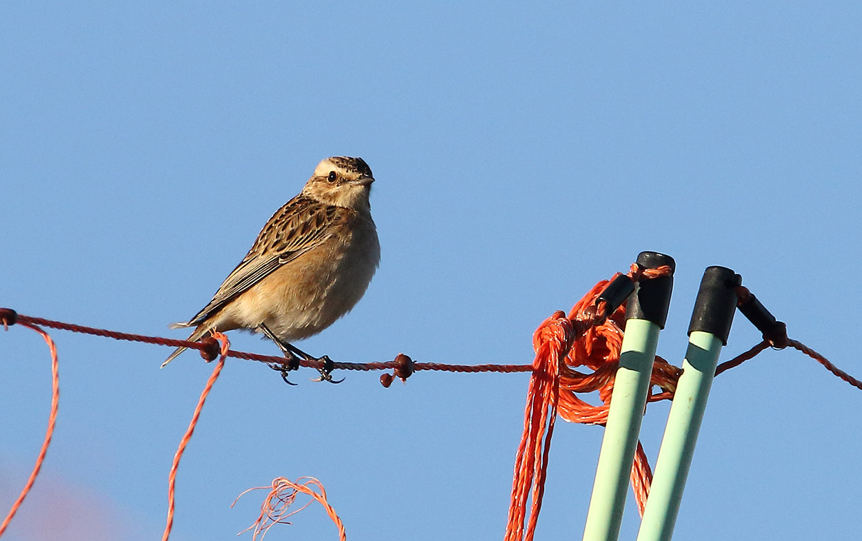 Aspettando ancora un pò per sfruttare eventualmente le ottime condizioni di luce, la mia pazienza è stata premiata con la visione e foto di due stiaccini che saltellavano dal terreno ai fili di una recinzione posta a tutela di un gregge.