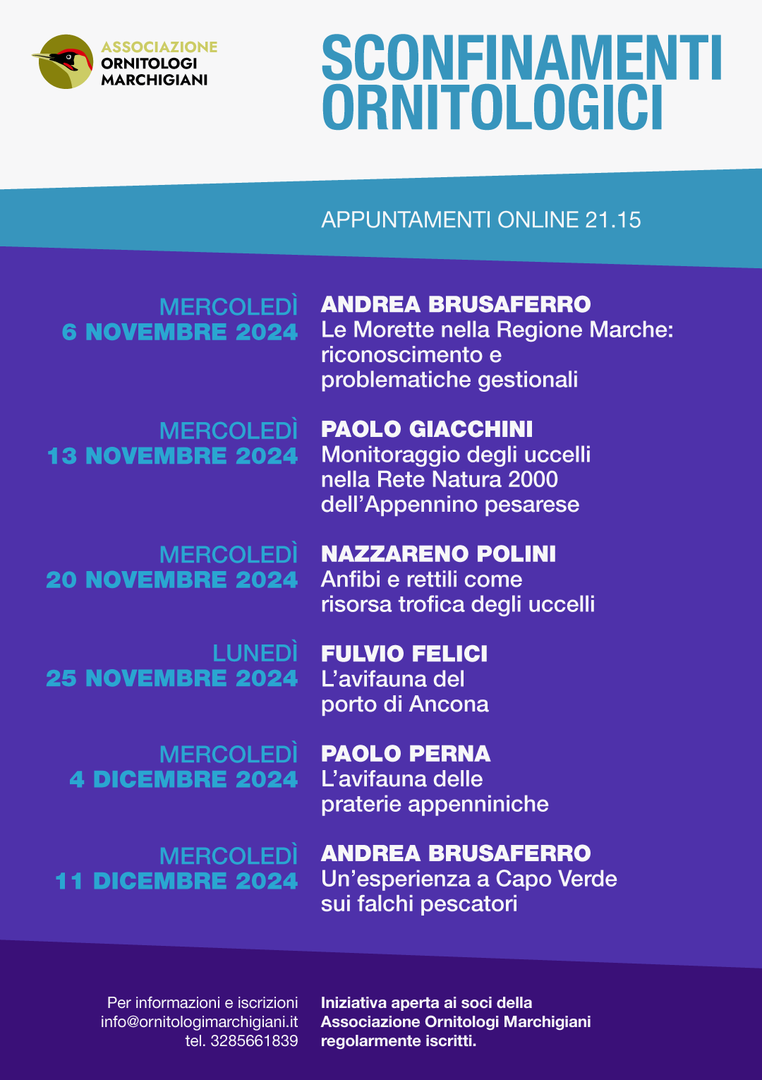 Per informazioni e nuove iscrizioni info@ornitologimarchigiani.it, tel. 3285661839