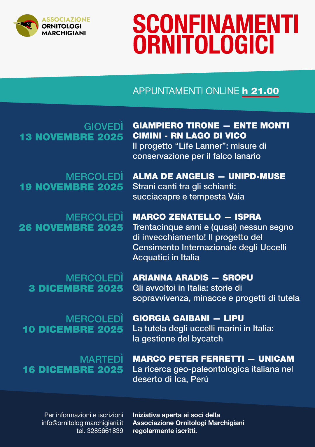 Presentiamo il calendario della quarta edizione dei webinar serali su ornitologia e dintorni, con un’interessante serie di appuntamenti! Rispetto alle edizioni precedenti, l’inizio è stato anticipato alle 21.00. L’iniziativa è aperta ai soci dell’Associazione regolarmente iscritti.